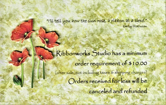 $10.00 minimum order in RIBBONS required on all orders. After sale, sales tax & shipping not included in the $10.00 or your order will be canceled.