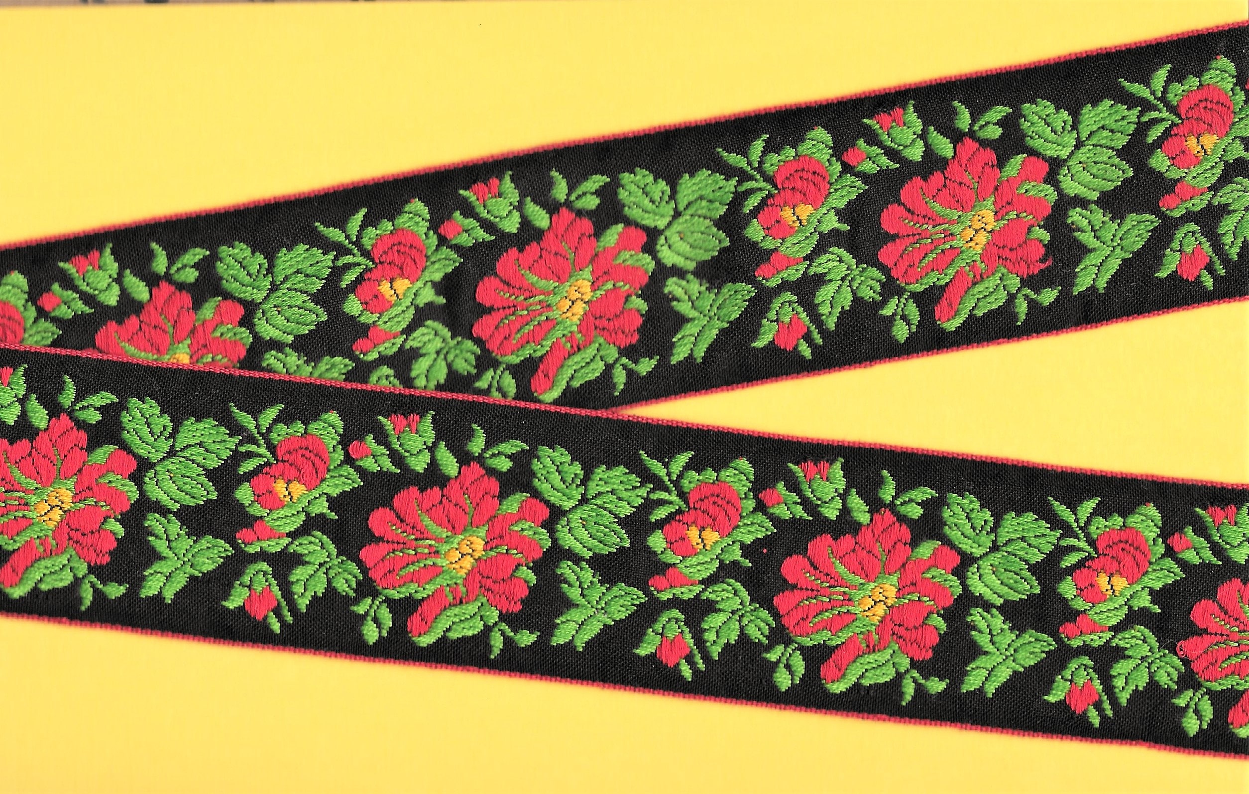 Jacquard Ribbon Trim - named for the man who invented the loom on which this trim is made - Joseph Marie Jacquard (France 1732-1854). Jacquard trims nowadays are woven using many different materials including rayon, polyester, metallic, cotton, blends and on rare occasion silk. Unless otherwise noted these trims are all cold water machine wash/dry and are colorfast. Please use your own judgment.