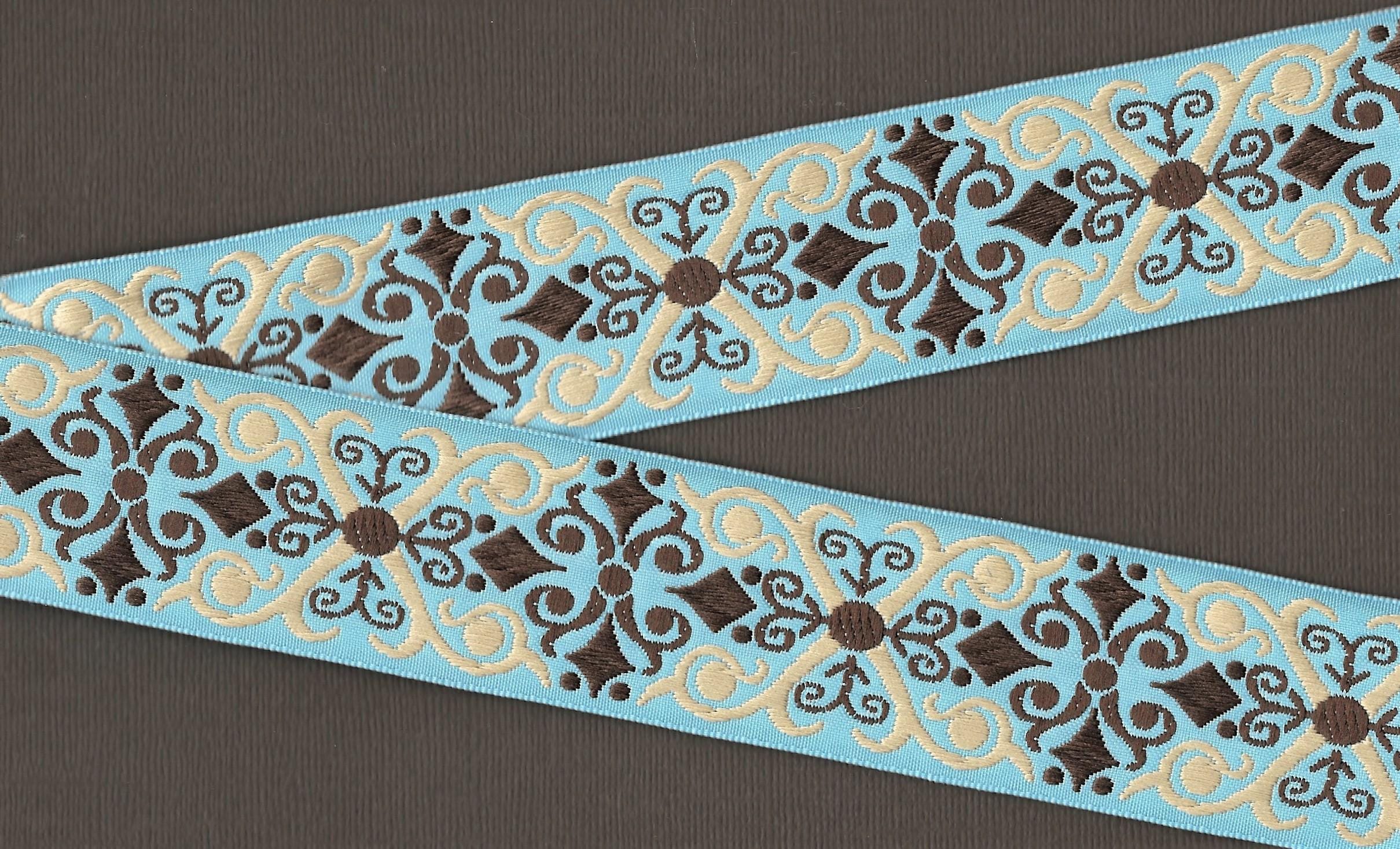 Jacquard Ribbon Trim - named for the man who invented the loom on which this trim is made - Joseph Marie Jacquard (France 1732-1854). Jacquard trims nowadays are woven using many different materials including rayon, polyester, metallic, cotton, blends and on rare occasion silk. Unless otherwise noted these trims are all cold water machine wash/dry and are colorfast. Please use your own judgment.