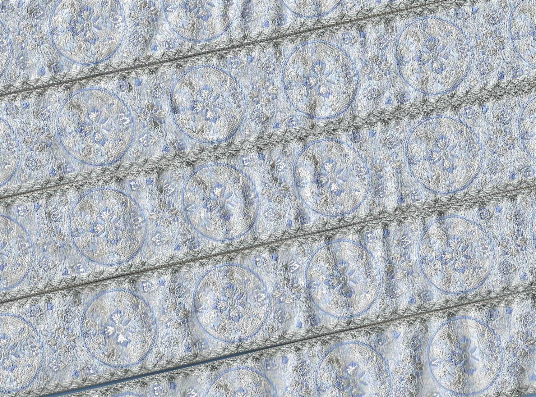 Jacquard Ribbon Trim - named for the man who invented the loom on which this trim is made - Joseph Marie Jacquard (France 1732-1854). Jacquard trims nowadays are woven using many different materials including rayon, polyester, metallic, cotton, blends and on rare occasion silk. Unless otherwise noted these trims are all cold water machine wash/dry and are colorfast. Please use your own judgment.