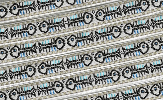 ANIMALS/Water G-05-A Jacquard Ribbon Poly Trim 1-1/8" wide (28mm) Dark Navy Background w/Green/Yellow & Grey Fish