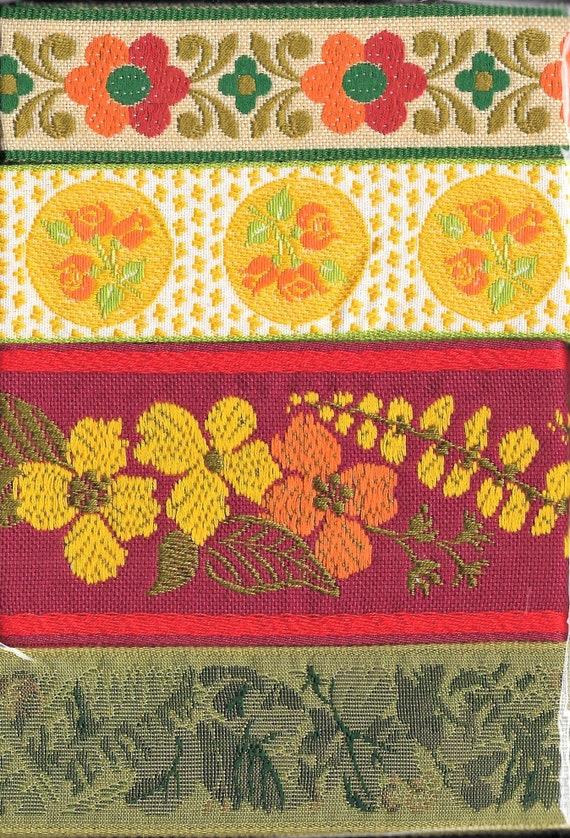 RIBBON PAK-108a Jacquard Ribbon Cotton Trim (4yds) 1yd ea of 4 VINTAGE Retro Hippie Boho Designs
